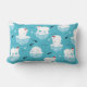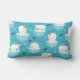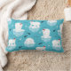 Ein Lumbalkissen mit einem niedlichen Weihnachtsmuster mit Eisbären, die auf schwimmendem Eis mit roten Weihnachtsmannmützen stehend sind. Kleine Iglus, Schneeflocken und Fische umgeben diese bezaubernden Eisbären, die auf dem Wasser abkühlen. Hellblauer Hintergrund. Niedliche und skurrile Urlaubsplanung.