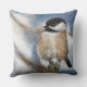 Niedlicher Winter Black Capped Chickadee Throw Kissen. Das Design auf diesem Kissen ist ein bezauberndes Winterchické. Ideal für Natur- und Vogelliebhaber! Dieses Kunstwerk ist auch auf anderen Produkten zum Mischen und Mischen verfügbar! Kunst aus Jenns Emporium.