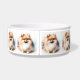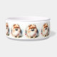 Ein flauschiger Spitz mit einem blühenden Orange- und Weißmantel mit großen, ausdrucksstarken Augen und einem fröhlichen Ausdruck. Es liegt inmitten weicher, pastellfarbener Blume und sanfter Aquarellpracht und schafft eine warme und einladende Atmosphäre. Der Hintergrund ist hell und luftig, was das Fell des Hundes und sein spielerisches Verhalten verstärkt.