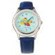 Kinderuhr aus Edelstahl mit blauem Lederarmband