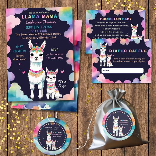 Feiern Sie die bevorstehende Ankunft Ihres Kleinen mit dem bezaubernden Niedlichen Watercolor Lama Mama Mexican Baby Shower Design. Dieses schöne Thema ist perfekt für Eltern, die ihre Babydusche mit den lebhaften Farben und dem fröhlichen Geist einer mexikanischen Fiesta infizieren möchten. Im Mittelpunkt dieses Designs steht die bezaubernde Lamamama, ein bezauberndes Symbol für die Pflege der Liebe, das das Wesen dieses besonderen Anlasses perfekt einfängt. Dieses Design mit einem skurrilen und coolen Lala-Lama-Motiv vereint den spielerischen Charme niedlicher Kawaii-Alpakas inmitten magischer Wolken. Die wunderschönen Aquarellwolken fügen eine ätherische Touch hinzu und schaffen eine traumhafte Kulisse, die die Freude und Vorfreude an der Begrüßung eines neuen Lebens verkörpert. Dieses Thema eignet sich ideal für eine geschlechtsneutrale Babydusche, die eine harmonische Mischung aus Eleganz und Spaß bietet, die für alle attraktiv ist. Das Thema der Lama-Liebe wird mit einer lebhaften, von einer mexikanischen Fiesta inspiriert Farbpalette zum Leben erweckt, die eine farbenfrohe Aquarellästhetik zeigt, die Wärme und Feiern ausstrahlt. Egal ob Sie eine Baby-Dusche aus Lama-Party beherbergen oder einfach nur ein individuelles Thema suchen, dieses Design sorgt für ein unvergessliches Erlebnis voller Lachen, Liebe und einer Touch der Magie.