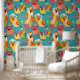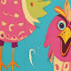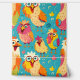 Niedliche Tapete für diejenigen, die Hühner Liebe! Hühner im Aquarellstil in Blau, Gelb, Rosa und Rot. Niedlicher Mittlerer Westen oder Landwirtschaftsthema.