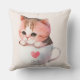 Niedliche weißrosa Katze im Tea Cup (2) Kissen