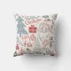 Dieses niedliche Weihnachtskissen zeichnet sich durch ein lustiges skurriles Muster von Santa-Illustrationen, Bäumen und Geschenke in Rosa, Rot und aquamarin aus.