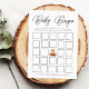 Niedliche Baby Dusche Bingo Spielkarte mit "Baby Bingo" oben in einem modernen schwarzen Drehbuch mit einer Aquarelldarstellung eines Babyfox, umgeben von Herbstlauben in Orange-, Rot- und Gelbtönen, als Zentrum Bingo Spot. Personalisieren Sie mit der Mutter, um den Namen und Baby-Dusche Datum am unteren Ende. Das Design koordiniert mit unserer Niedlichen Baby-Duschkollektion von Woodland Animals.