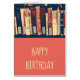 Ein trendy künstlerischer Cartoon eines Booklover- oder Buchwurmgeburtstagsentwurfs mit einem modernen bunten Illustrations-Cartoon eines Bibliotheksbücherregals passend für ein Mädchen oder ein Tween.
