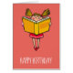 Ein girly rosa Cartoon eines Booklover- oder Buchwurmgeburtstagsentwurfs mit einem modernen bunten Illustrations-Cartoon passend für ein Mädchen oder ein Tween.