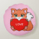 Niedlicher Baby Fox mit Herz auf Rosa Rundes Kissen