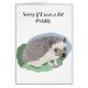 Diese Grüße-Karte enthält einen niedlichen Baby-Igel und die Beschriftung "Sorry, wenn ich ein bisschen stachel bin", die bearbeitet werden kann, sowie den Textbereich, in dem für Ihre eigene Nachricht verlassen wurde.