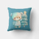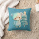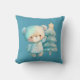 Kissen mit einer hübschen Abbildung. Ein gemütlicher Bär mit Sternen und Glitzern in seinem Fell. Stehend neben einem Weihnachtsbaum. Pastellblau-grün. Whimsical und niedlich.