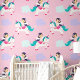 Niedlicher Cartoon Flying Unicorn Rosa Kinderzimme Tapete