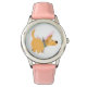 Kinderuhr aus Edelstahl mit rosa Lederarmband