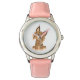 Kinderuhr aus Edelstahl mit rosa Lederarmband