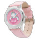 Kinderuhr aus Edelstahl mit rosa Lederarmband
