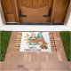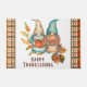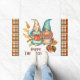 Die niedliche Erntedank-Vordertür-Matte ist mit einem Zwergpaar versehen, das Kürbis und Kuchen mit kariertem Hintergrund im Herbst hält.