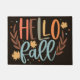 Niedliche Pinsel gestrichen Typografie "Hallo Fall" Thema auf schwarz. Begrüßen Sie Ihre Gäste mit einer saisonalen Türe für Herbst, Erntedank und Halloween.