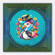 Niedlicher Flamingo mit einem farbenfrohen Sommerhut, der fröhlich lächelt. Umgeben von einer Vielzahl von Blume, die das Bild in lebendigen Farben glänzen lassen. Dieses Design strahlt Freude, Leichtigkeit und die Schönheit des Sommers aus.