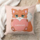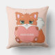 Niedlicher Babyfox mit Herz auf hellkorallenrosa Kissen. Text kann personalisiert sein.