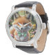 Niedlicher Fox mit einem grünen und rosa Bug Armbanduhr