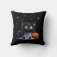 Niedlicher Schwarz Kätzchen Halloween Trick oder Treat Throw Kissen. Ein lustiges und lustiges Trick-oder-Leckerei-Tee mit einem mit Augen, niedlichen, aber beängstigenden Kätzchen, das ein schlichtes Geisterkostüm trägt! Das unheimliche Kätzchen und die skurrile Ausstattung verleihen dem Kätzchen eine Touch Halloween-Charme.