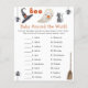 Mit niedlicher Wasserfarbe von Baby Geist und Halloween Ästhetik. Ein bisschen Boo ist fast fällig! Halloween Babydusche mit Aquarellhocker, schwarze Katze, Hexenhut, Magic Mop ( Besenstiel ), Spinne, die aus einem Netz hängt. Der kleine Geist isst einen Lollipop.