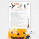 Mit niedlicher Wasserfarbe von Baby Geist und Halloween Ästhetik. Ein bisschen Boo ist fast fällig! Halloween Babydusche mit Aquarellhocker, schwarze Katze, Hexenhut, Magic Mop ( Besenstiel ), Spinne, die aus einem Netz hängt. Der kleine Geist isst einen Lollipop.