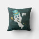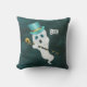 Dieses Kissen hat einen niedlichen, weißen Geist, der in einem dunkelblauen Nachthimmel schwebt, mit gepunkteten Sternen, die einen blauen, formalen Hut tragen und einen extravaganten schwarzen Stock mit einem goldenen Schädel oben halten. Passen Sie den Boottext mit der Vorlage an.