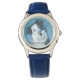 Kinderuhr aus Edelstahl mit blauem Lederarmband