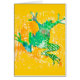 Eine mutiges Waldtierwatercolor-Illustrationskunst mit einem bunten coolen Frosch und einem mutigen goldenen gelben Hintergrund. Ein cooler Entwurf für Naturtierfroschliebhaber.