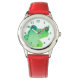 Kinderuhr aus Edelstahl mit rotem Lederarmband