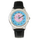 Niedlicher Happy-Pink-Glattleder-Donut-Cartoon Armbanduhr