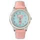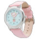 Kinderuhr aus Edelstahl mit rosa Lederarmband