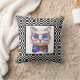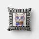 Ein niedliches Kissen für jeden Katzenliebhaber! Niedlicher Hipster Katze auf einem angesagten schwarz-weißen Schachbrettboden.
