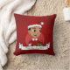 Kissen mit einem niedlichen, lächelnden Hispanic/Latino-Jungen mit kurzem schwarzem Haar, trägt der Junge ein Weihnachtskostüm mit einem roten Hut und hält ein Geschenk; in einem roten Kreis auf einem roten Hintergrund ein Weihnachtsferien-Design mit einer bearbeitbaren Textvorlage für Ihren Namen oder Ihre Nachricht.