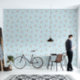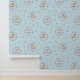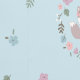 Niedliche Mädels-Tapete mit Blume und Blättern auf hellblauem Hintergrund. Weiche Farben: Creme, Sand, Lilie, Blau. Ideal für kleine Mädchen Kinderzimmer oder Kinderzimmer!