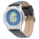 Kinder Edelstahluhr mit schwarzem Lederarmband