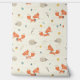 Niedlicher Little Fox und Igel mit Herbstlauben und Pilzen auf cremefarbenem Hintergrund