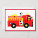 Party Einladung für Feuerwehrfahrzeuge. Ersetzen Sie den Platzhaltertext durch Ihre Informationen. Gegebenenfalls hinzufügen und löschen. Sie können auch Schriftart und Farbe des Texts ändern