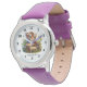 Uhr, Kinderuhr aus Edelstahluhr mit lila Lederarmband