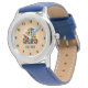 Kinderuhr aus Edelstahl mit blauem Lederarmband
