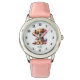 Kinderuhr aus Edelstahl mit rosa Lederarmband