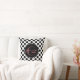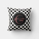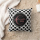 Niedliches personalisiertes Throw-Kissen; Schwarze u. weiße Polka-Punkte, fertigen mit Ihrem Namen u. Initiale auf dem Rosen-/Schwarz-Aufkleber besonders an