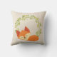Niedlicher Orangenfox mit grünem Blätter Kranz Kissen