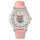Kinderuhr aus Edelstahl mit rosa Lederarmband