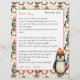 Personalisierte Briefe vom Weihnachtsmann für Kinder. Fügen Sie dem personalisierten Brief des Weihnachtsmannes den Namen Ihres Kindes hinzu. Niedliche Vintage Pinguine mit Bonbons. Auf der Vorderseite können Sie das Gedicht vom Weihnachtsmann verlassen oder personalisieren und den Namen Ihres Kindes hinzufügen. Auf der Rückseite finden Sie eine niedliche Weihnachtswortsuche für Ihr Kind.