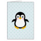 Sehr schönes Pinguindesign mit hellblauem Polka-Dot-Hintergrund.