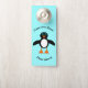 Dieser phantastische Türhänger zeichnet sich durch einen niedlichen Pinguincharakter aus, der mit einem weißen Bauch, großen blauen Augen mit schwarzen Pupillen und niedlich orangen Füßen und Schnabel ausgestattet ist. Dieser charmante kleine Wintervogel wird Kinder und Erwachsene begeistern. Der Pinguin sitzt auf einem eisblauen Hintergrund, um ihn an seine kühle arktische Zuhause zu erinnern.
