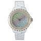 Eine wunderbare Damenuhr mit weißem Armband und grün-weiß-kariertem Ziffernblatt. Trägt sich ganz fabelhaft. Exzellenter Druck, sehr klare Farben. Schönes Design.