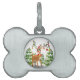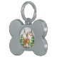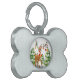Niedlicher Rentier im Schnee mit Bäumen und Ornamenten, die von seinen Geweihten hängen