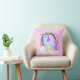 Ein niedliches rosa Kissen für die girliest Mädchen, die einen niedlichen blauen Unicorn unter einem starry Regenbogen kennzeichnen. Fertigen Sie den Hintergrund zu jeder möglicher Farbe besonders an, die Sie mögen.